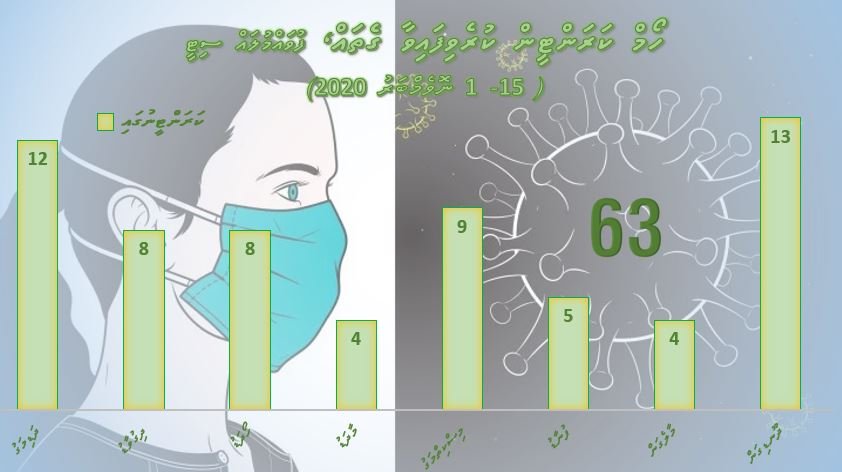 ފާއިތުވި 15 ދުވަހުގެ ތެރޭގައި ޖުމްލަ 63 ގެއެއްގައި މީހުން ހޯމް ކަރަންޓީނުގައި ތިބޭނެ ކަމަށް ހިސާބުތަކުން ދައްކައެވެ. އެއީ ދޫނޑިގަމު 13 ގެއަކާއި ދަޑިމަގު 12 ގެއަކާއި، މިސްކިތްމަގު 9، ހޯދަޑާއި ދިގުވާނޑާއި ކޮންމެ އަވަށެއްގައި 8 ގޭގައި މީހުން އަދި ފުނާޑުގައި 5 ގެއެއް ހޯމް ކަރަންޓީނު ކުރެވިފައި ވެއެވެ. އެންމެ މަދުން މީހުން ތިބި މާލެގަން އަދި މާދަޑުގައި ކޮންމެ އަވަށަކުން ވެސް 4 ގެއެއްގައި މީހުން ހޯމް ކަރަންޓީނުގައި ތިއްބެވެ.