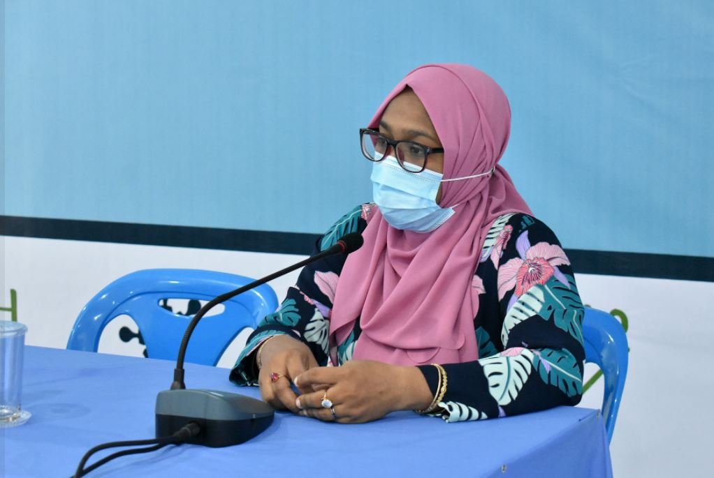 ފުވައްމުލައް ސީޓީ އީއޯސީގެ ޕްރެސްގައި ސިޏިއާ ޕަބްލިކް ހެލްތު އޮފިސާ އާމިނަތު އަހުމަދު މައުލޫމާތު ދެއްވަމުން ގެންދަވާ.