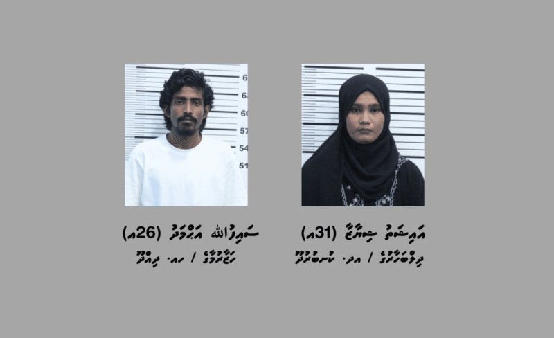 ފުލުހުންގެ އިންޓެލިޖެންސަށް ލިބުނު މައުލޫމާތަކާ ގުޅިގެން އިއްޔެ ހިންގި އޮޕަރޭޝަނުގައި ހައްޔަރުކޮށްފައިވަނީ އދ. ކުނބުރުދޫ / ދިލްބަހާރުގެ، އައިޝަތު ޝިޔާޒާ (31އ) އާއި ހއ. ދިއްދޫ / ހަޒާރުމާގެ، ސައިފުﷲ އަޙްމަދު (26އ) އެވެ. އެދެމީހުންގެ ތެރެއިން އައިޝަތު ޝިޔާޒާއަކީ ފުލުހެކެވެ. އެދެމީހުން ހުއްޓުވައި ފުލުހުންގެ ބެލުމުގެ ދަށަށް ގެނެސްފައިވަނީ ވިޔަފާރަވެރިންގެ މިސްކިތް ކައިރިންނެވެ.