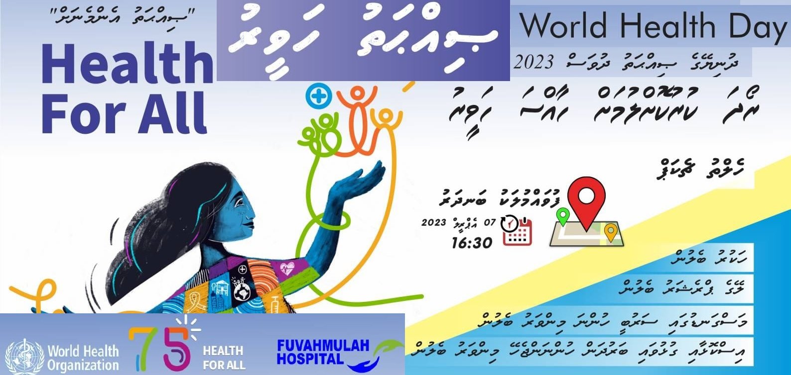 ދުނިޔޭގެ ސިއްހަތު ދުވަހަކީ އޭޕްރީލް މަހުގެ 7 ވަނަ ދުވަސް ކަމުގައި ވެފައި މިފަހަރުގެ އެދުވަސް މިއައީ ރާއްޖޭގެ އާއްމު އިންތިާޚބުގެ ތެރެއަށް ކަމަށް ވުމާއެކު އެދުވަހުގެ މުނާސަބަތުގައި ހިންގާ ތަފާތު ހަރަކާތްތައް މިވަނީ މުޅި އޭޕްރީލް މަހުގެ ތެރެއަ ށްބަހަލެވިފައި ކަމަށް ފުވައްމުލަކު ހޮސްޕިޓަލުން މައުލުމާތު ދެއްވައެވެ.