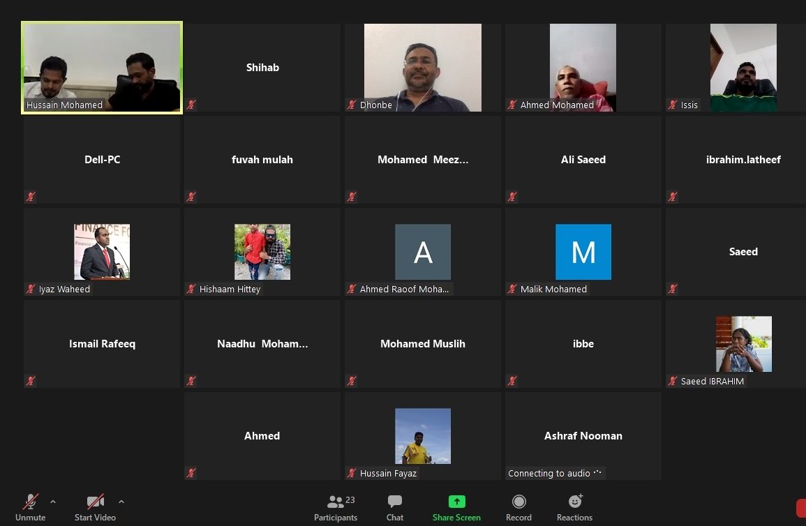 ފުވައްމުލައް ސިޓީގެ 3 އެމްޕިން ރޭގައި ބޭއްވި އޮންލައިން ބައްދަލުވުމުގެ ތެރެއިން. އެމްޕީ ދޮންބެ، އިގުތިސަދީ ކޮމެޓީގެ މެމްބަރެއް. ފޮޓޯ؛ އެމްޕީ ހުސޭން