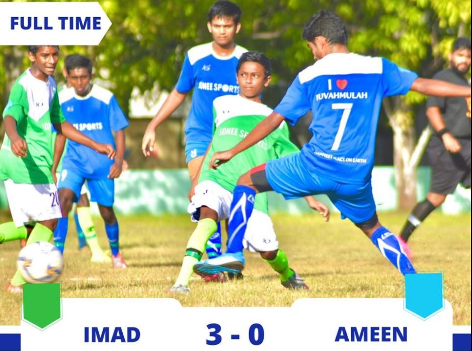 މިއަދު ހެނދުނު ރަސްމީ ބޯޅަދަނޑުގައި ކުޅުނު މުބާރާތުގެ ފުރަތަމަ މެޗުގައި އިމާދު ހައުސްގެ ޓީމު ވާދަކުރީ އަމީހުން ހައުސް އާއެވެ. އިމާދު ހައުސް އިން ވަނީ ފާއިތުވި އަހަރުގެ ރަނަރަޕް އަމީނު ހައުސްގެ ޓީމު 3-0 ބަލިކޮށްފައެވެ. މިމެޗުގައި އިމާދު ހައުސް އިން ކާމިޔާބުކުރި އަމީނު ހައުސްގެ ވިލްހަން އަތުން ބައިކޮޅަށް ވަން ގޯލަކާއި އާއި ޝައިހަން އަދި ރިއާން ޖެހި ދެ ގޯލުންނެވެ.