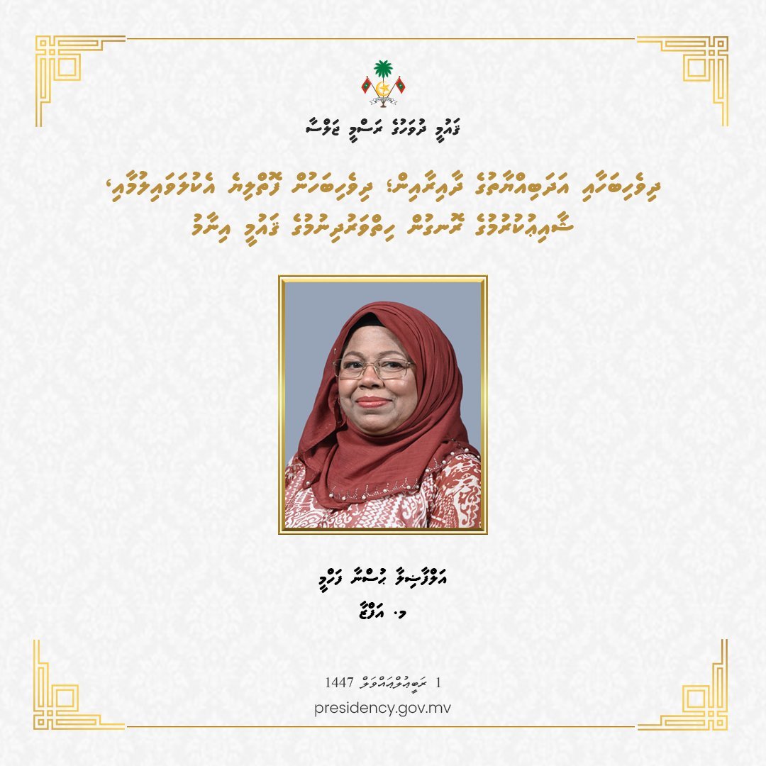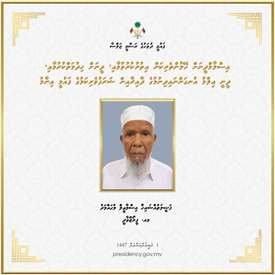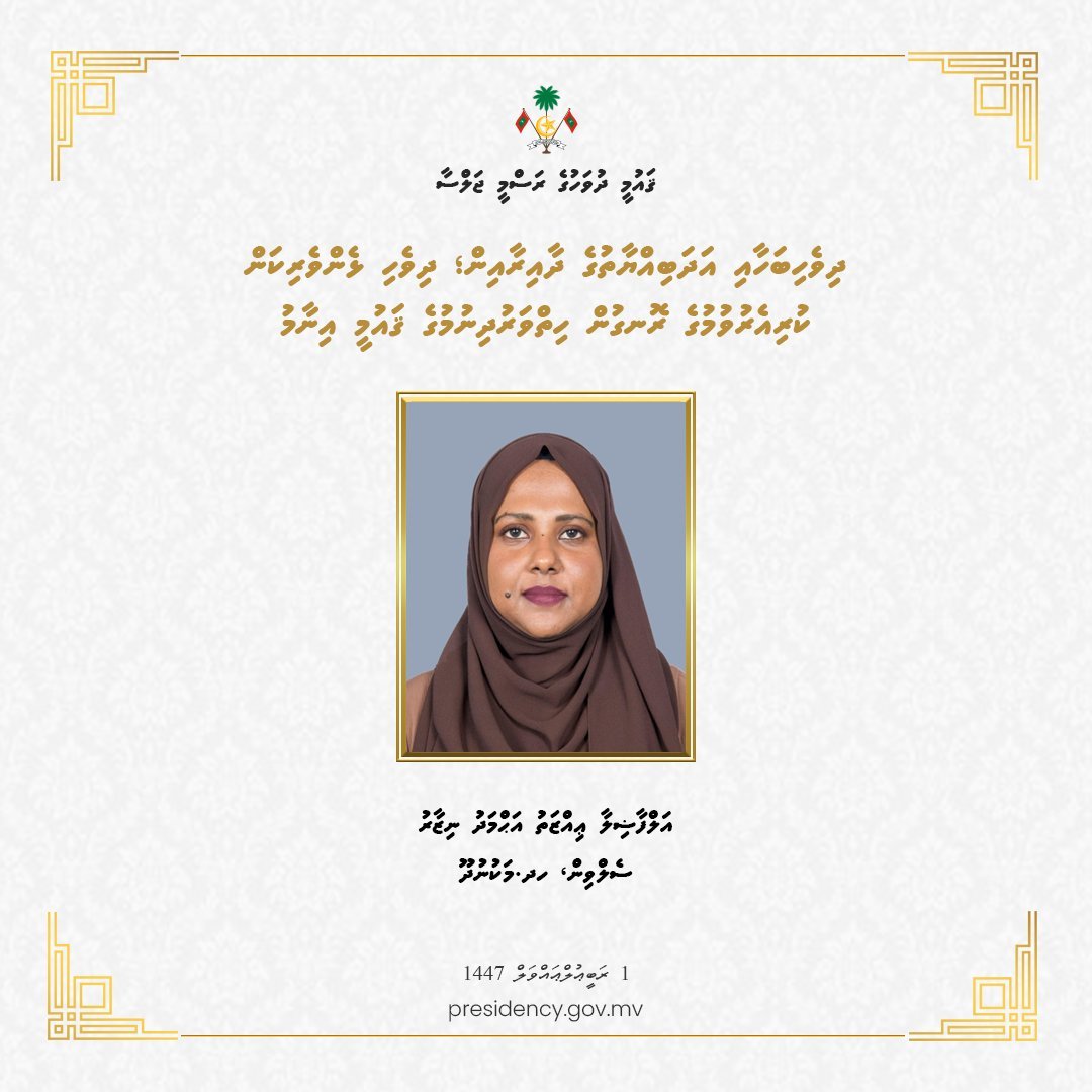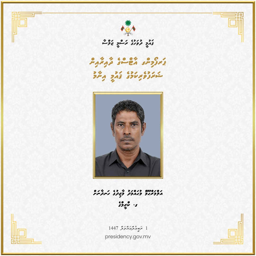 މި އަހަރު ޝަރަފުވެރިކަމުގެ ޤައުމީ އިނާމު ލިބިވަޑައިގެންނެވި ތިން ބޭފުޅުންގެ ތެރެއިން އެއް ބޭފުޅަކަށް އިނާމު އެރުވީ، އެ ބޭފުޅާގެ ހަނދާނަށެވެ.